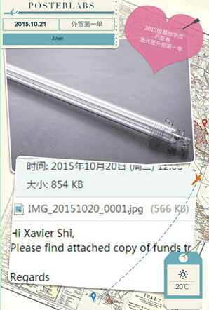 2015年10月21日,经贸学院2013级学生石新春,经过在孵化基地2年的学习,现在到了济南三轴数控设备有限公司进行实习,短短2个月的时间,就促成了他自己的外贸第一单。其中将一根雕刻机的激光管出口给了一个澳大利亚客户。功夫不负有心人,在基地学习期间,石新春同学作为企业负责人就认真学习企业知识,对产品知识肯钻研,通过两年的积累,现在得以实践。可喜可贺。