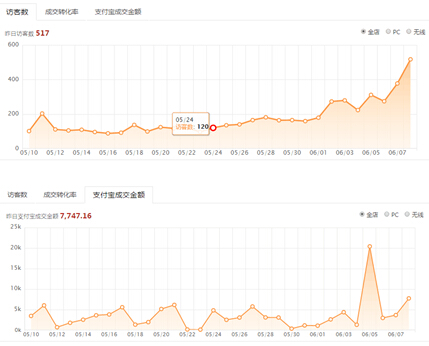 5月29日引入今日首尔韩国化妆品淘宝店铺内贸运营项目,由基地老师带队并安排宋雪、赵艺璇同学相互配合做这个内贸运营数据整理的项目,客户反映很好。通过这几位同学的数据发送,使得该店铺的运营总监能够第一时间了解该产品的流量访客数、转化率、关键词的分析买入,同时分析出哪款产品流量呈上升趋势,哪款产品适合打造成爆款。六月份以后的数据更是呈几何式增长,店铺势头一片大好。如图: