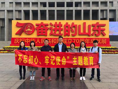 2019年10月12日,山东管理学院经贸学院经济学教师党支部全体党员来到山东省博物馆,进行“不忘初心、牢记使命”现场主题教育。本次学习的主要内容是“奋进的山东”。