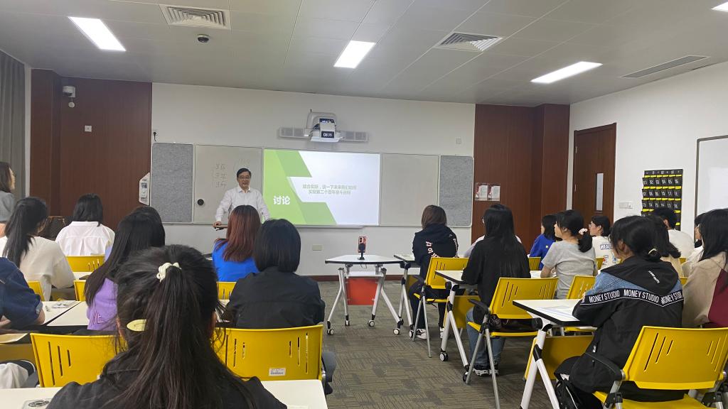 9月16日上午,党委书记冯庆禄围绕“以青春之名 赴时代之约”这一主题,与马克思主义学院的刘潆老师在明志楼共同为我院2022级国贸一班本科生上了一堂精彩的思政课。课程采取线上线下同步进行,因疫情暂未到校的学生在线同步聆听观看直播课堂。