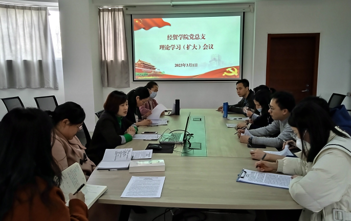 3月1日下午,经贸学院党总支在明德楼203召开理论学习(扩大)会议。会议由党总支书记张琪主持,经贸学院班子成员、科级干部、党支部书记参加学习。