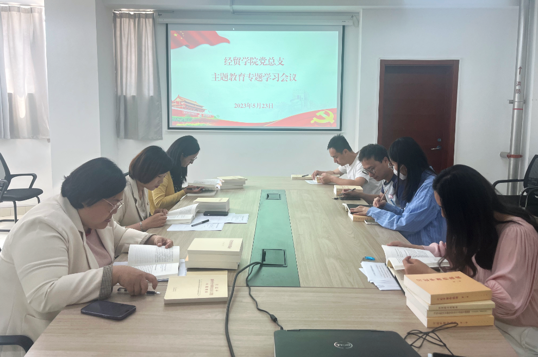 5月23日上午,经贸学院党总支在明德楼203会议室组织召开理论学习(扩大)会议,集中学习主题教育“把党的伟大自我革命进行到底”专题内容。会议由党总支书记张琪主持,经贸学院班子成员、科级干部参加学习。