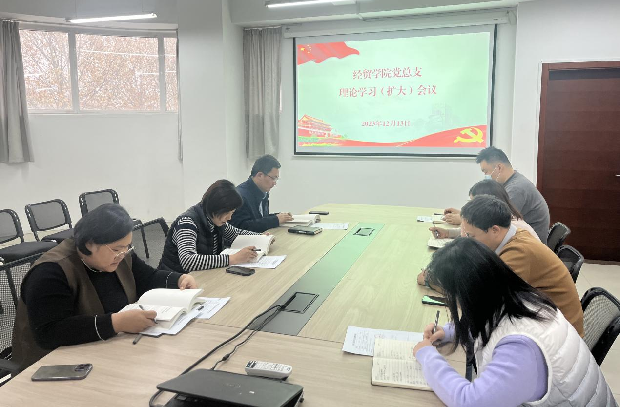 12月13日下午,经贸学院党总支在明德楼203会议室组织召开理论学习(扩大)会议。会议由党总支书记张琪主持,班子成员、科级干部参加学习。
