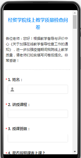 开展在线教学督导检查。结合线上教学的特点,对照本科课程合格评估指标体系,学院设计发布了《经贸学院线上教学质量检查问卷》,先后组织教师自查、教研室抽查、学院抽查,掌握了老师们在线教学组织、教学进度、课程资源准备利用、作业布置和批改等实施情况,实现了对学院教学质量的督导和监控作用。