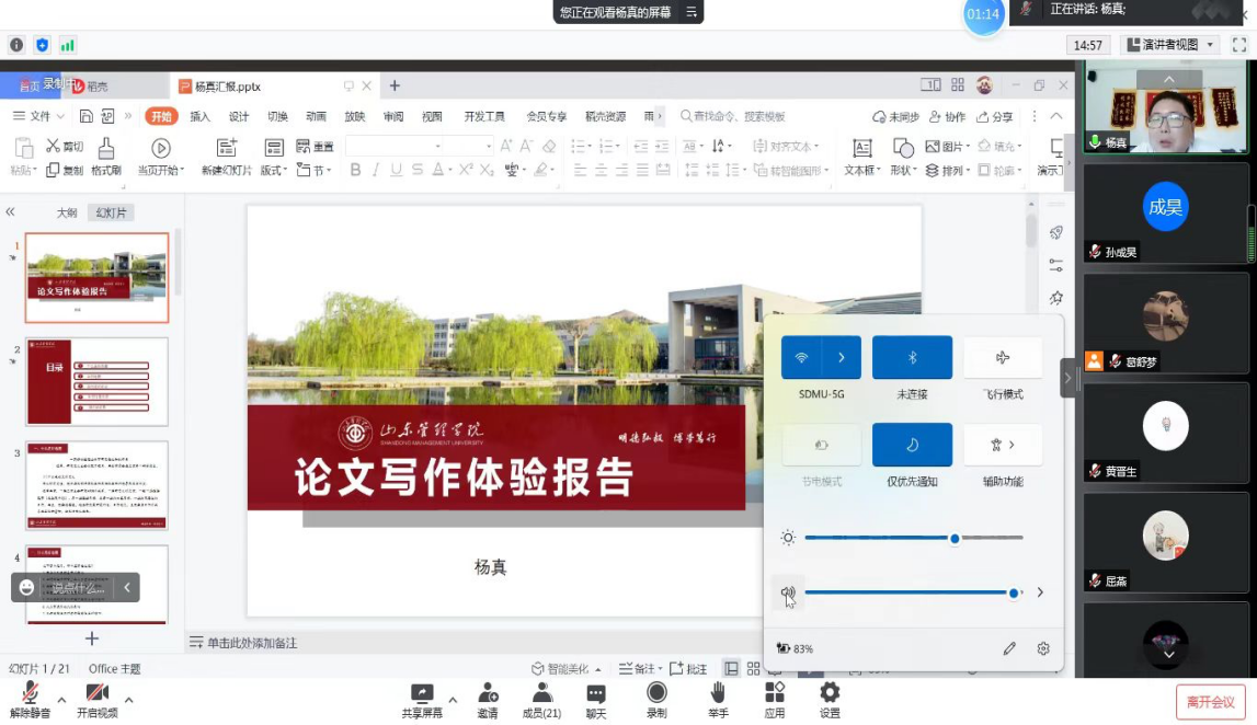 7月8日,杨真博士结合个人科研实践,从什么是好选题、如何进行选题、如何进行理论论证和计量论证及具备的优势等方面指导教师领会论文、项目申报的选题策略,掌握理论论证、计量论证的主要方法。