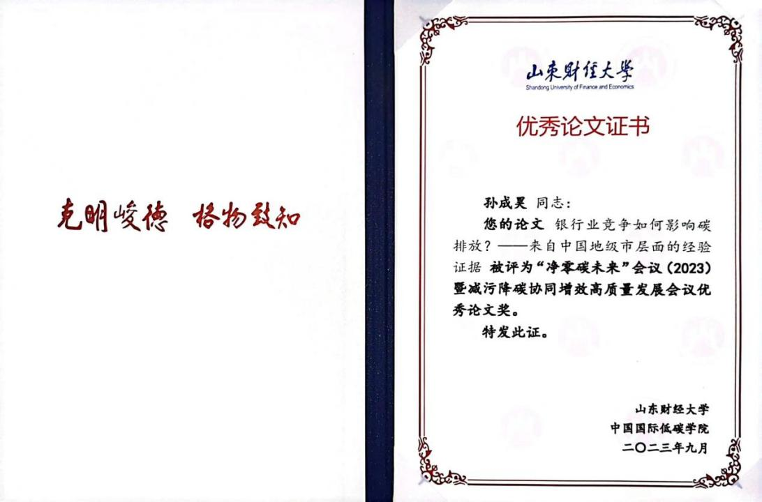 上一条:数字金融与区域绿色经济转型团队参加2023年泰山科技论坛——碳达峰与绿色金融高层峰会 下一条:张甜博士科研论文获评2023年公司治理国际研讨会优秀论文