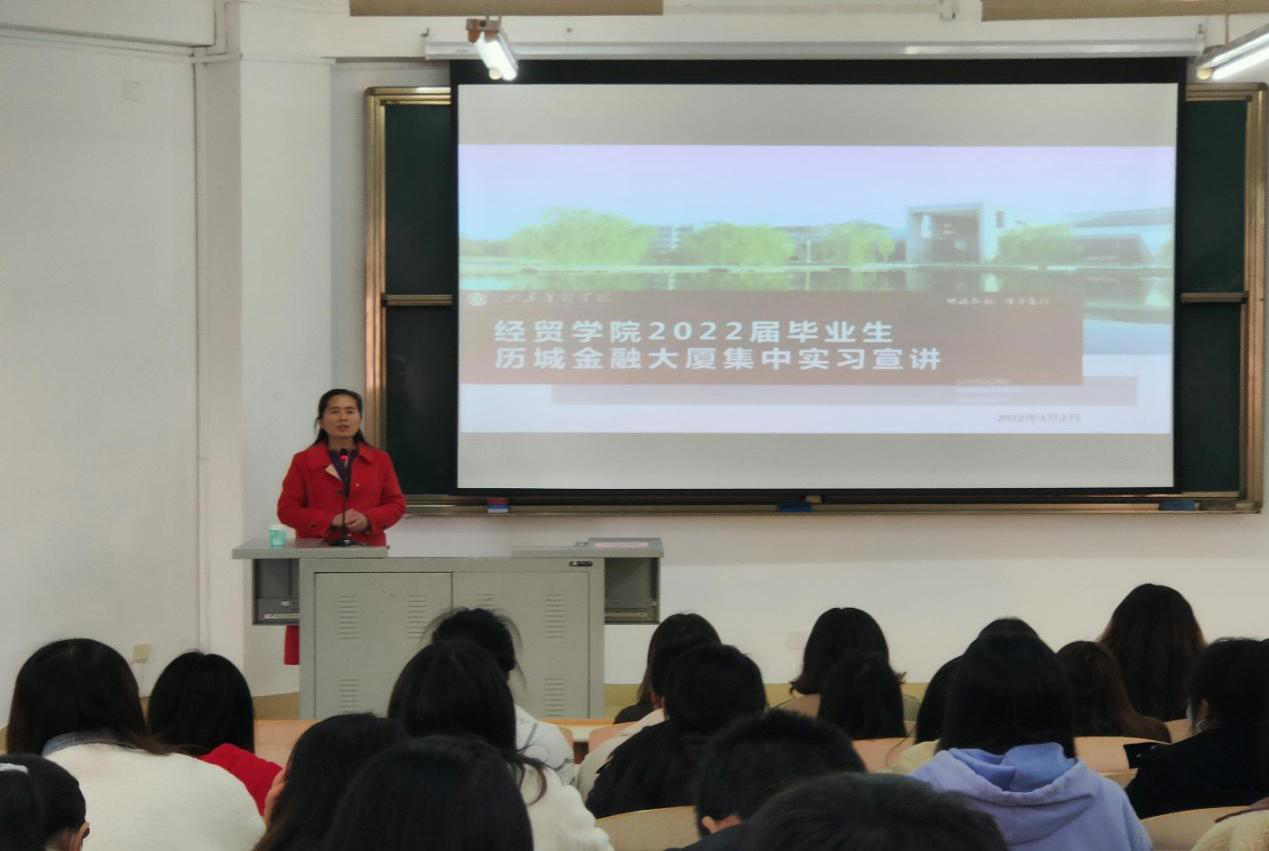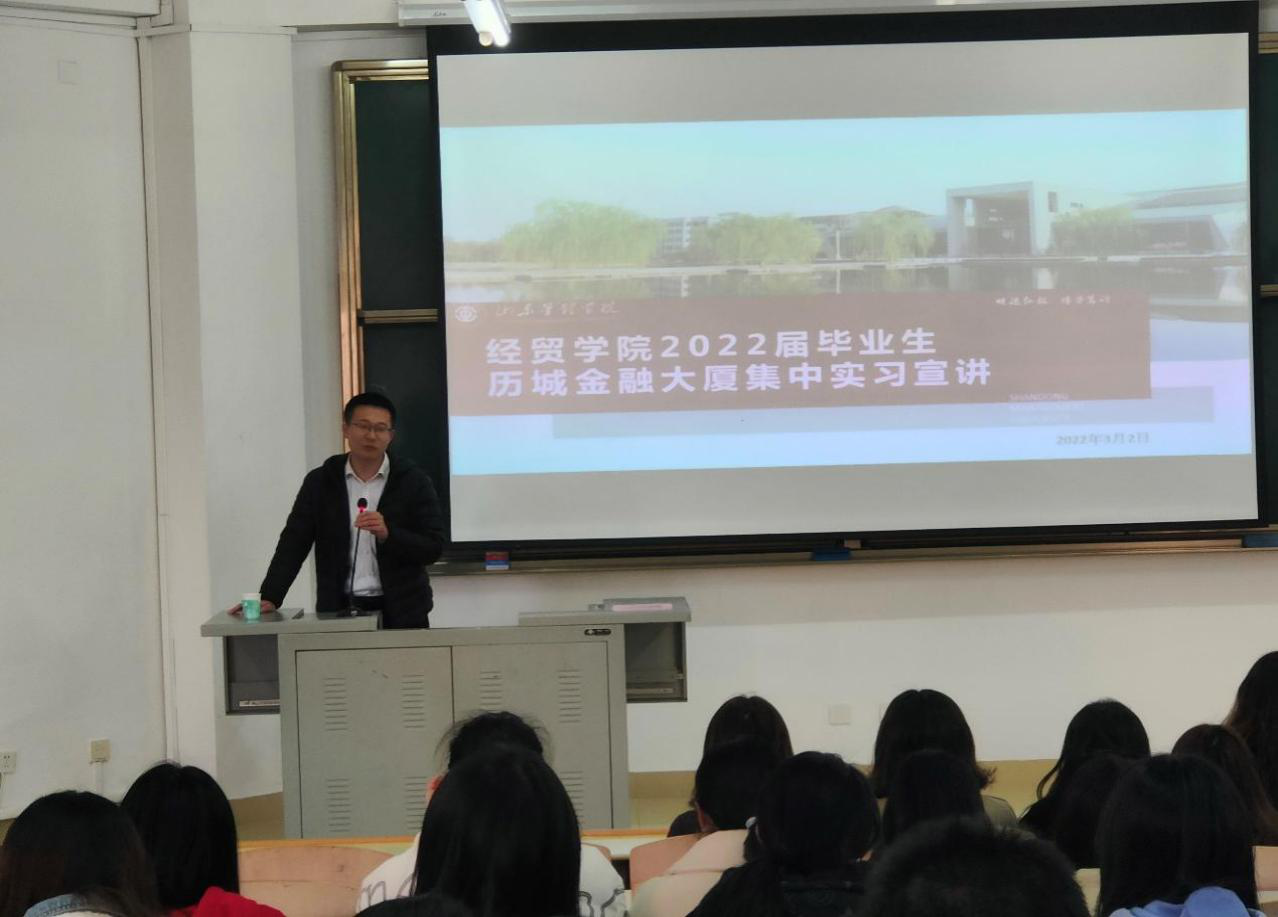 为做好毕业生集中实习工作,3月2日,经贸学院于博学楼B101开展2022届毕业生集中实习宣讲会,本次宣讲会特邀历城金融大厦山东中启创优科技股份有限公司进行宣讲,经贸学院副院长张劲青、毕业班辅导员出席本次会议,2022届毕业生积极参加。