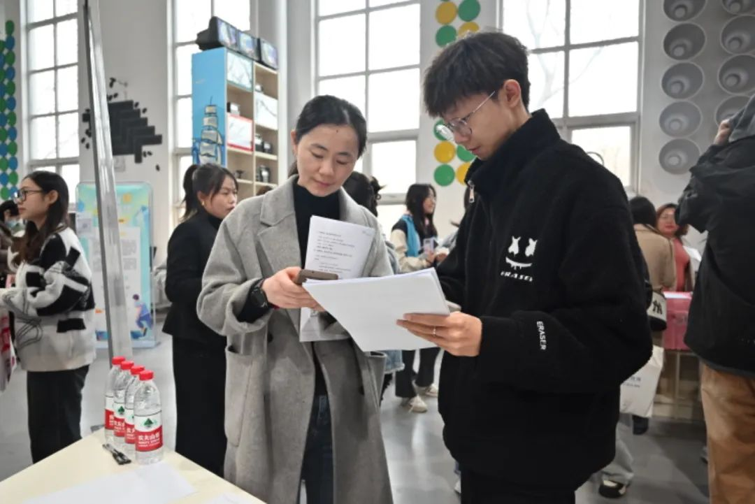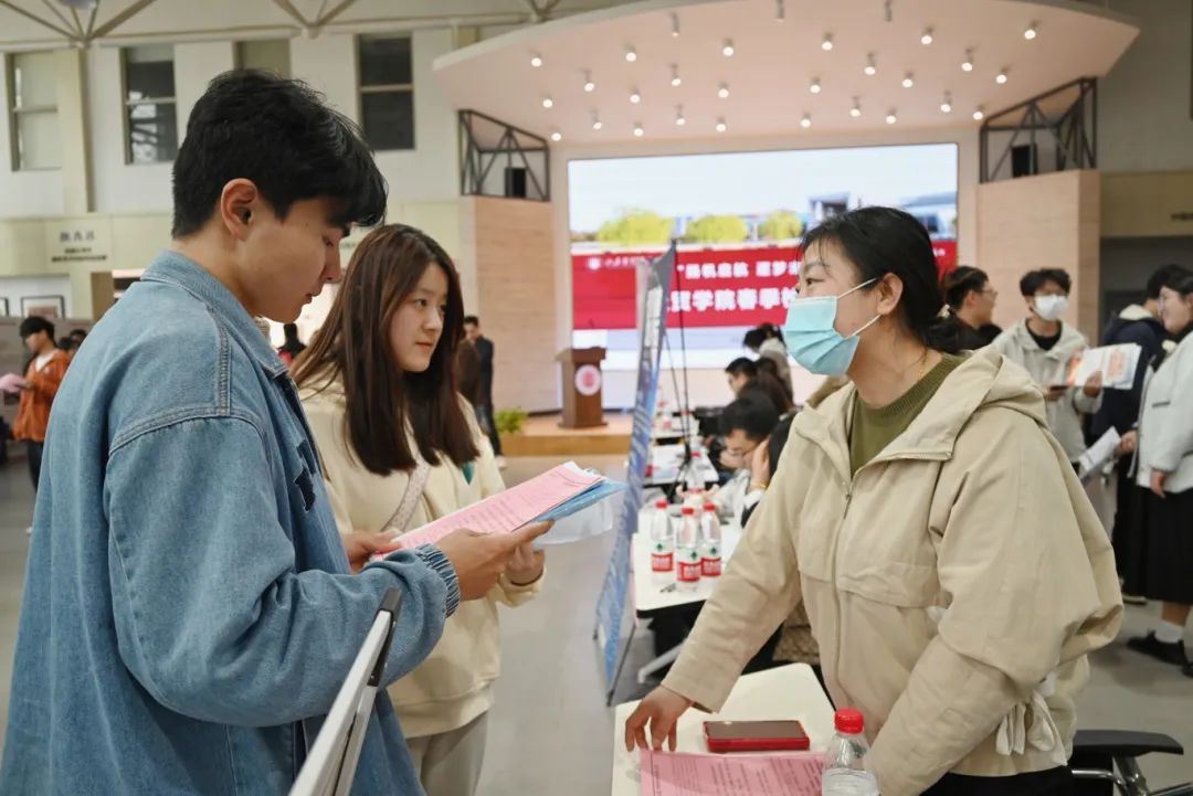 双选会现场人头攒动、气氛热烈。用人单位结合各自特色,积极布展,发放资料,进行推介宣讲,立足实际为应聘毕业生答疑解惑。应聘毕业生积极与招聘单位沟通交流,深入了解用人单位及岗位需求情况,达成初步意向。现场热烈的气氛还吸引了许多非毕业班的同学前来观摩,提前了解招聘流程和岗位需求。