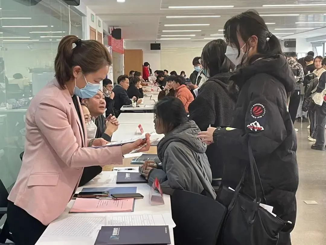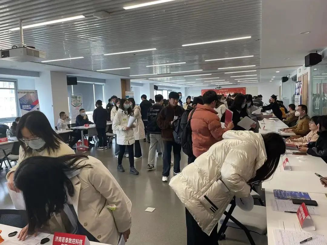 本次招聘会邀请了阿里巴巴国际站济南、青岛、泰安等地头部生态企业60余家,为2023届毕业生提供了外贸业务员、跨境电商运营等200余个相关热门岗位,实现了企业与人才双选,产业与专业互通。招聘会现场,同学们纷纷向心仪的企业投递简历,企业HR现场面试、现场答疑,气氛火热。