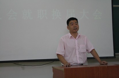 经贸学院学工办主任杨成宝老师主持会议,并宣读了新一届学生会成员名单。(见文末)