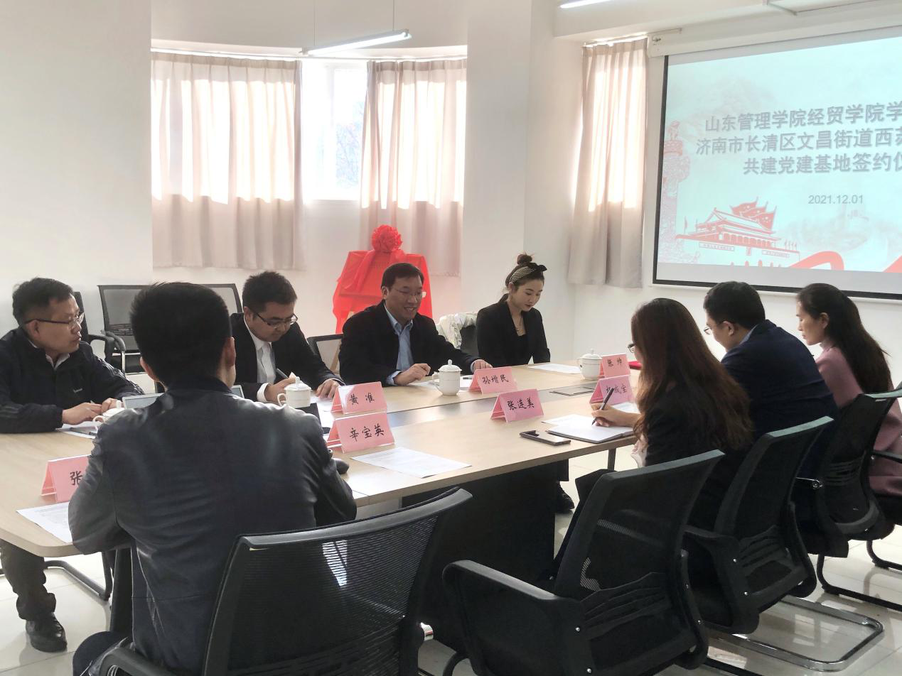 12月1日,应我院学生党支部邀请,济南市长清区文昌街道西苏村党支部书记孙增民一行到访,就建立合作共建党建基地事宜展开交流座谈,学院党总支书记张连美、院长杨成宝及学生党支部相关教师学生热情接待。
