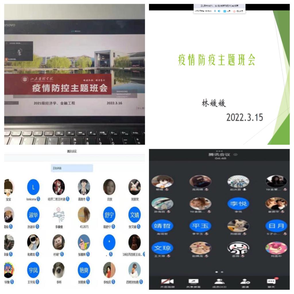 近期全国疫情防控形势复杂多变,为有效推进疫情防控相关工作,严格落实常态化疫情防控措施,坚决守住校园防线,做到“疫情防控无小事,校园安全第一位”。3月14日起,经贸学院各辅导员纷纷召开疫情防控主题线上班会。