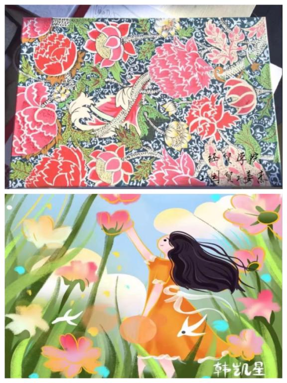 学院积极探索线上文化育人新模式,开展了“疫”起创意,“静‘戴’花开”口罩设计大赛、“‘疫’起祝福,共克时艰”书画大赛、“缱绻春光,与你同在”草坪音乐会等,号召学生通过多种形式弘扬主旋律,传播正能量。优秀作品在网络平台上展播,学生们用绘画记录了所思所想,用书法表达了内心祝福,用歌声传递了必胜信心,不仅充分发挥了文艺抗“疫”的力量,而且在互相启迪中激发了文艺创作的灵感,提升了美学修养。