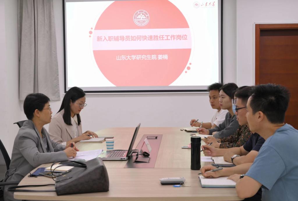 为进一步加强辅导员队伍建设,提升新入职辅导员的职业素养和综合能力,尽快适应辅导员工作角色,9月25日,经贸学院邀请“山东高校辅导员年度人物”——山东大学研究生院、党委研究生工作部学位办主任姜楠,以《新入职辅导员如何快速胜任工作岗位》为题,为全体辅导员老师开展了一场专题培训。本次培训由学院党总支副书记仪云倩主持,全体辅导员参加。
