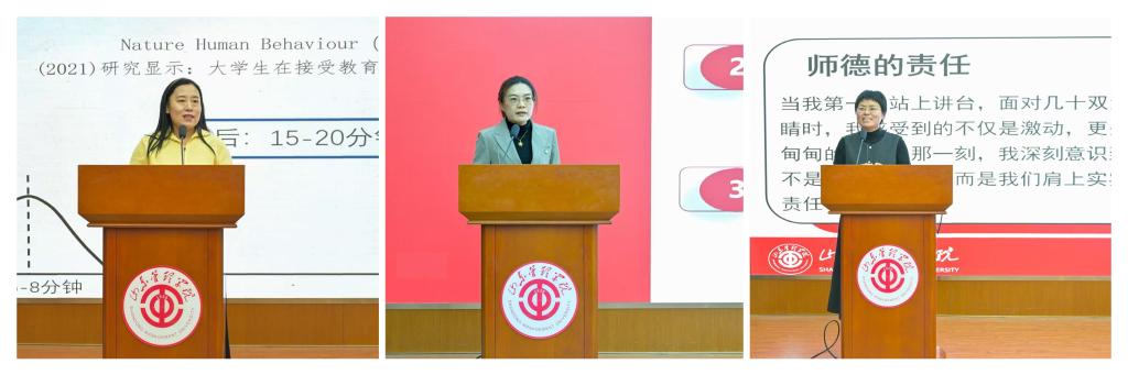 大会还邀请了教师代表张凡、张甜、刘珍,分别就教学、科研与育人心得进行分享,他们的精彩分享为全体与会教师树立了学习的榜样,带来了深刻的启迪。