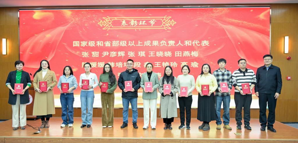 学校党委副书记孙琪为本年度在教学、科研等方面工作中涌现出的先进个人、团队代表颁奖并作总结讲话。他充分肯定了学院成绩,同时强调,当前学校“申硕”工作事关全局,是一场必须打赢的硬仗,并对全体教师提出三点希望:一是强化“主人翁”意识,将个人发展融入“申硕”大局,争当建设者;二是激发“拼搏者”姿态,在标志性成果上持续突破,追求卓越;三是凝聚“共同体”力量,打破壁垒,集中攻坚。
