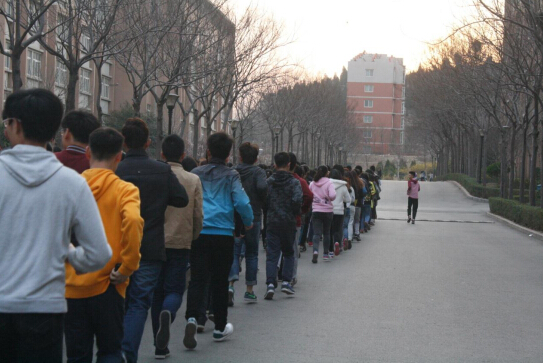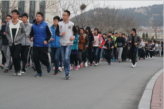 我院电商、金融、国贸、国商四个专业的全体同学积极参加,学生会主席陈俊龙带领宿管会、纪检部、体育部等学生会部门全力配合和监督,保证了第一次跑操活动的良好秩序。在跑操活动中,同学们往日的懒散面貌消失了,变得焕然一新。各班同学步伐整齐有力,口号响亮,振奋人心。放眼望去,跑操队伍像一条长龙在我们美丽的校园中穿行,成为山管一道亮丽的风景线。