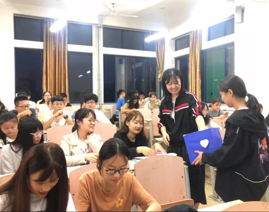 经贸学院特意为新生准备了中秋礼物——月饼,由我院辅导员老师们将月饼送到每位同学的手上,为大家送上中秋祝福,并欢迎同学们加入经贸学院这个大家庭,大家脸上都洋溢着灿烂的笑容,心里充满了幸福感。随后,大家一同玩了激动人心的拍七令和击鼓传花等游戏,同学们动人的歌声、欢乐的笑声回荡在教室的每个角落。