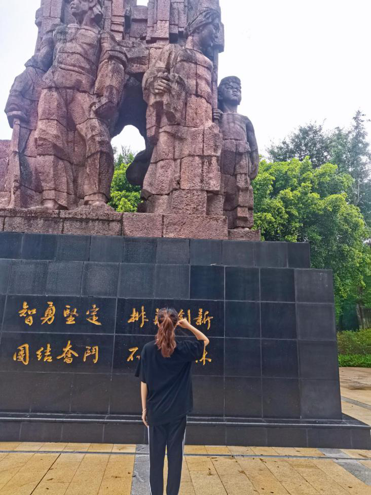 与此同时,四川达州的队员也到达了巴山魂广场。参加到了正在举行的解说队伍中,感受红军战士身上的巴山精神。巴山作为川陕革命根据地的重要组成部分,为中国革命的胜利做出了巨大贡献。以建“巴山魂”特此纪念。十二万红军赴汤蹈火,脚穿草鞋、头戴八角帽的他们,身背挺直,目光如炬,直刺苍穹。看着眼前的鎏金大字,使人震撼。我们感悟到了红军精神,那是一种“智勇坚定、排难创新、团结奋斗、不胜不休”的伟大精神,也是我们大学生要一代代传承下去的红色基因!