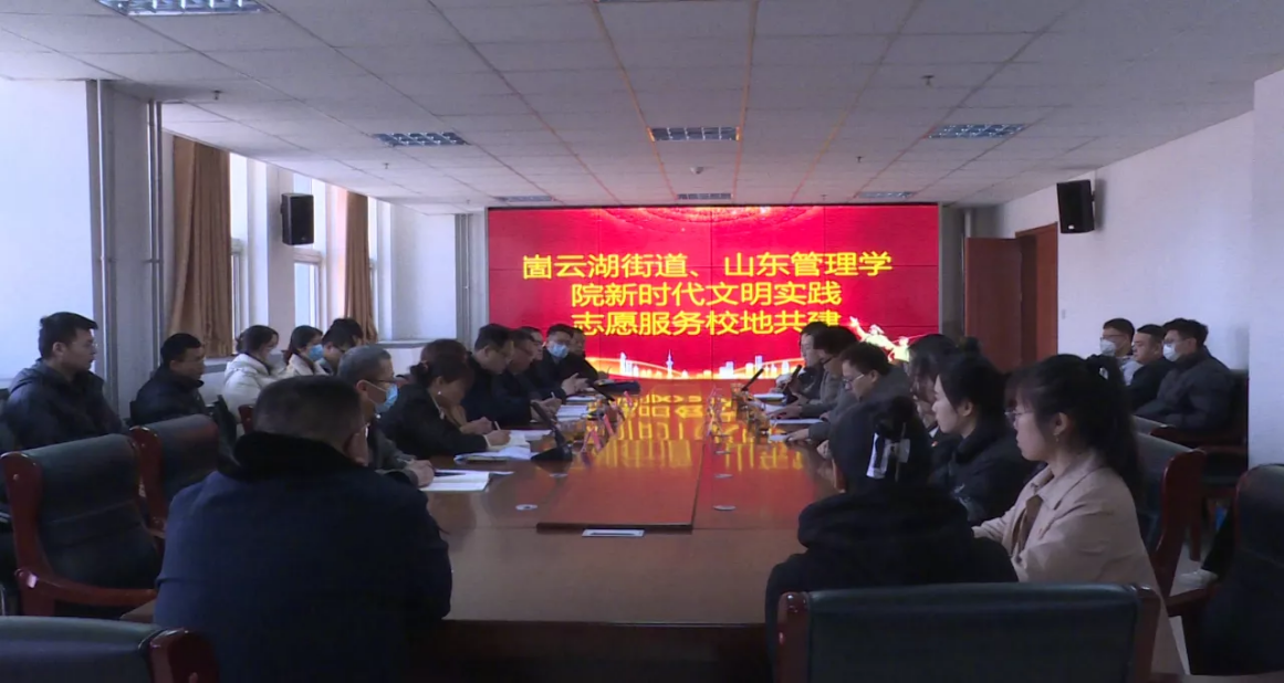为充分发挥我院人才优势,进一步做好志愿服务工作,服务当地经济社会发展,搭建校地合作志愿服务平台。3月1日,山东管理学院经贸学院党总支和崮云湖街道城管总支开展以"结对共建,携手文明"为主题的共建活动。山东管理学院经贸学院党总支副书记仪云倩,电子商务系主任黄效文,第一学生党支部书记张中正,第二学生党支部书记赵庆蔚,学生党员代表参加了座谈会。