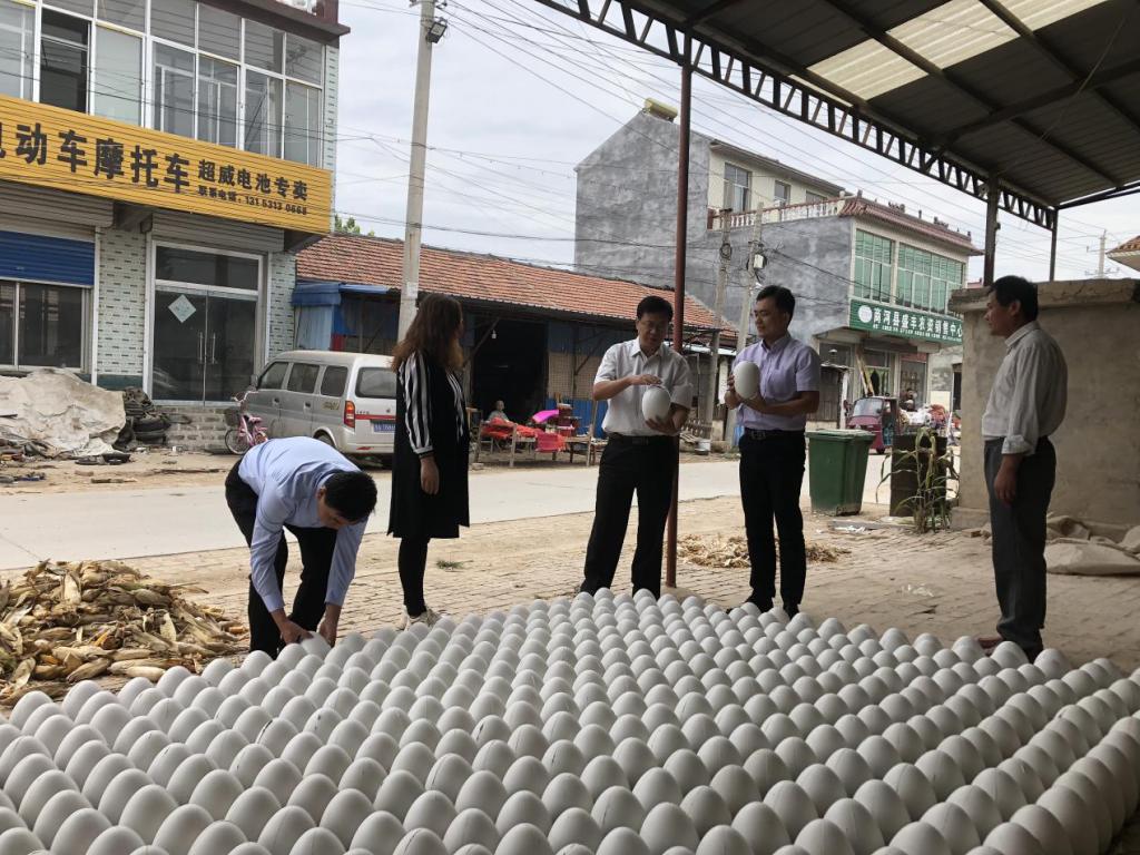 在新尚村,董以涛副院长一行实地考察了金蛋生产销售的全过程。新尚村是商河县出了名的“金蛋村”,全村130多户,550多口人,经过与山东管理学院深度合作,已成为济南市首家“中国淘宝村”。董以涛副院长与当地村民进行了交流,详细了解金蛋的生产、包装、销售、运输情况并对村民提出的问题进行解答。
