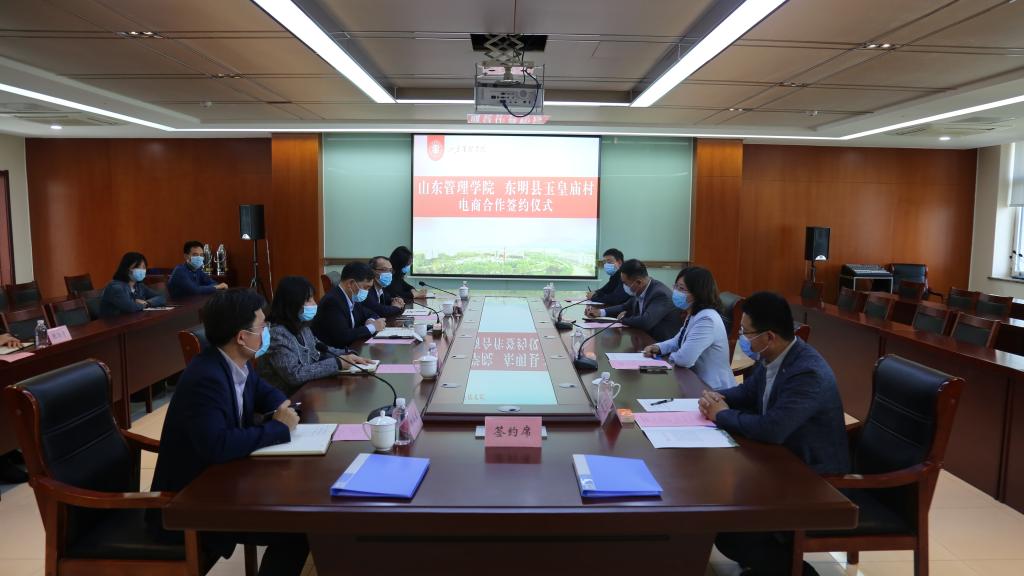 4月30日下午,我校与东明县玉皇庙村电商合作签约暨大学生社会实践基地揭牌仪式在明德楼668会议室举行。东明县委副书记赵宏亮、团中央书记处书记(兼职)、玉皇庙村党支部书记关志洁等一行4人出席仪式。学校党委书记冯庆禄接待了赵宏亮一行,办公室、团委、经贸学院等部门、单位负责人及部分专业教师参加了签约仪式。