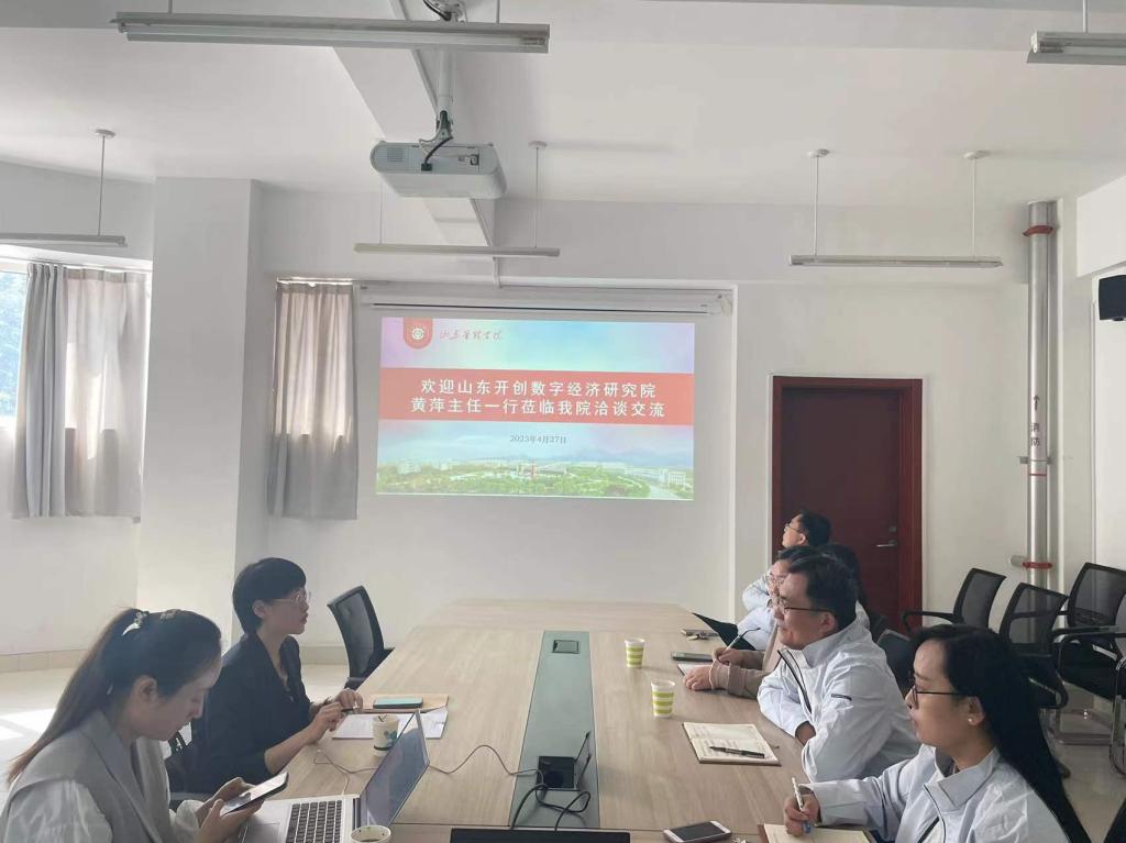 为紧跟行业发展趋势,探寻专业改革方向,提升学生就业竞争力,4月27日上午,山东开创数字经济研究院数据分析专委会主任黄萍等一行莅临经贸学院,就“大数据与经济学”专业建设相关事宜进行洽谈,经贸学院院长杨成宝、教学副院长王培培、经济学系主任张凡等相关负责人参加了会议。