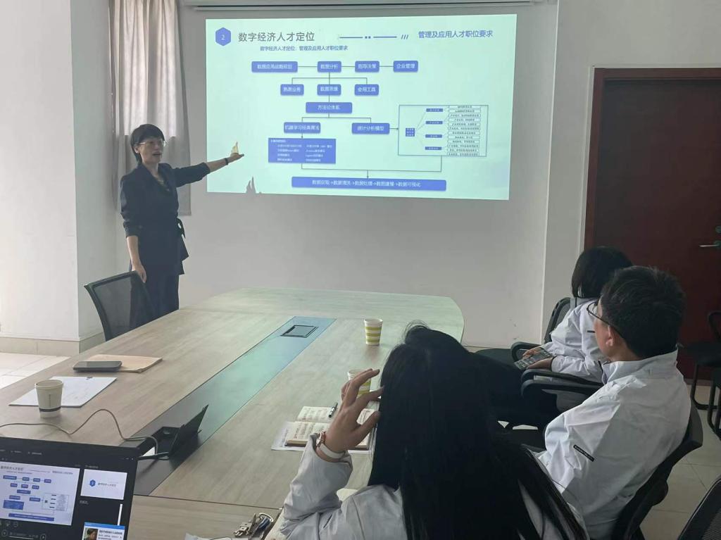 座谈会上,黄萍主任作了主题为《数字经济专业人才培养与课程设计》的报告,并对企业的基本业务、公司团队、运营模式的基本概况进行了介绍。黄萍主任强调,以互联网为核心的新一轮科技和产业革命蓄势待发,云计算、大数据、人工智能等技术群正在崛起,快速改变着企业业务经营和商业模式,经济学专业的发展也在发生变化,经济学专业教学应当着重培养学生的数据思维和软件使用能力,帮助学生构建更立体的知识框架、逻辑脉络和信息整合能力,数字经济相关专业更加应该注重培养学生的大数据意识。