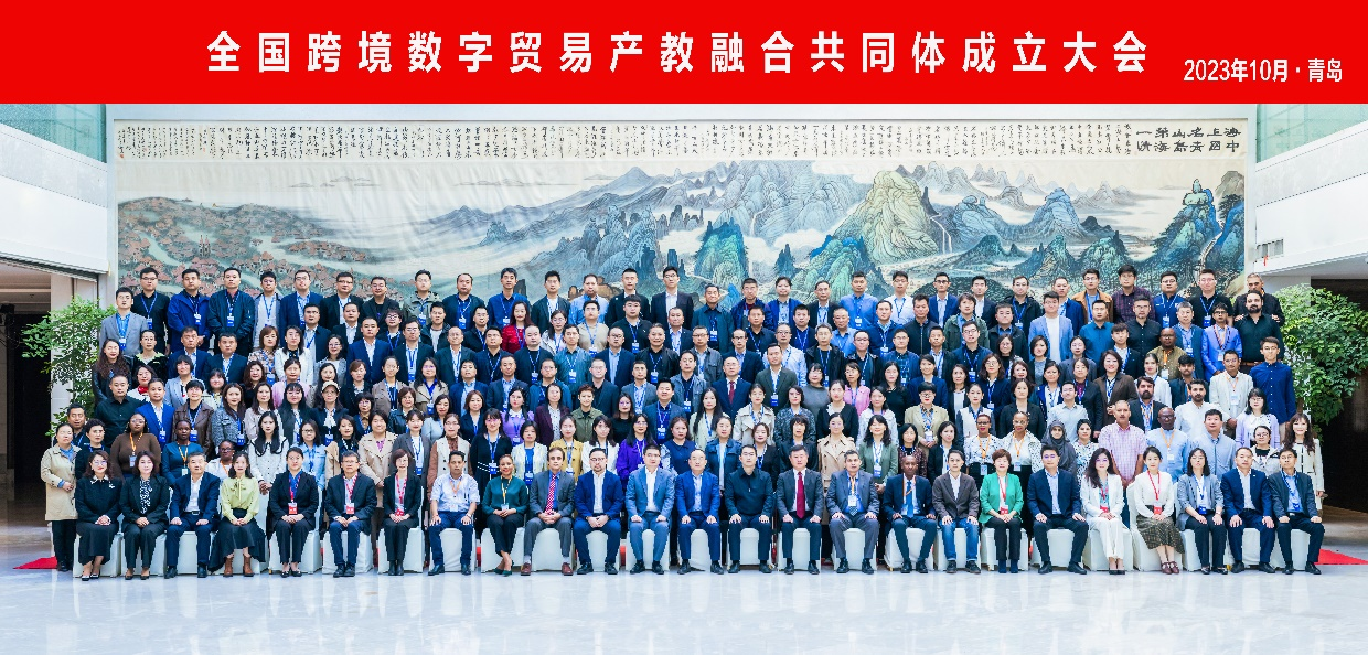 2023年10月27日,全国跨境数字贸易产教融合共同体成立大会在青岛召开。该共同体由中国职业技术教育学会、全国电子商务职业教育教学指导委员会、中国对外贸易经济合作企业协会和中国服务贸易协会指导,阿里巴巴(中国)网络技术有限公司、北京外国语大学等单位牵头,首批成员单位包括高等院校、行业协会、企业等340家,覆盖25个省级行政区。我院国际经济与贸易系主任闫付美作为学校代表参加共同体成立大会。