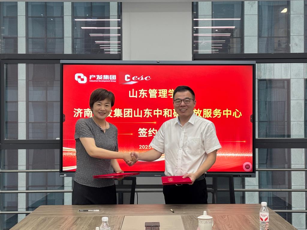 6月19日上午,山东管理学院与山东中和碳排放服务中心有限公司在济南产发集团基金大厦17层举行战略合作签约仪式。山东中和碳排放服务中心有限公司董事长焦振芳,山东管理学院经贸学院党委书记张琪出席活动。