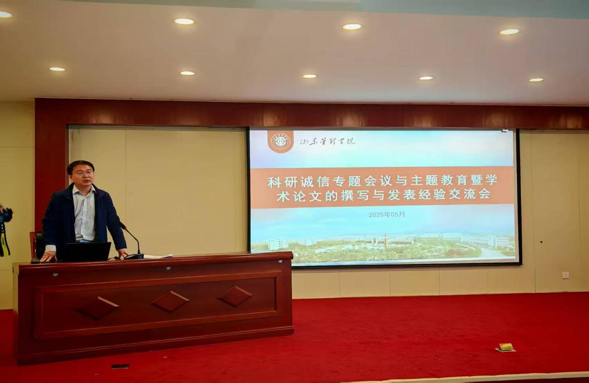 2025 年 5 月 28 日,山东管理学院经贸学院举办了以“科研诚信专题会议与主题教育暨学术论文的撰写与发表经验交流会”为主题的学术活动。本次会议由经贸学院副院长朱庄瑞主持,经贸学院全体教师参加,同时,会议还邀请到山东财经大学刘华军教授前来分享宝贵经验。