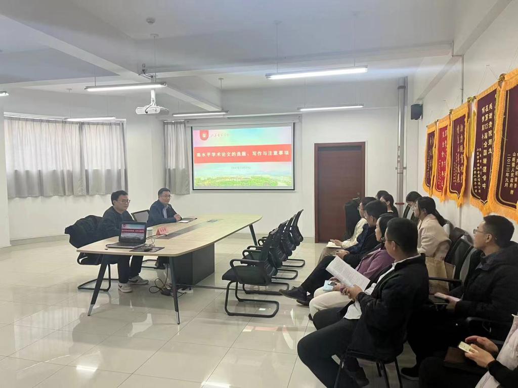 2023年11月23日下午,山东管理学院数字经济与区域高质量发展研究中心在明德楼203举办高水平学术论文写作研讨会。会议邀请《中国人口资源与环境》编辑部蒋金星编辑做了题为“高水平学术论文的选题、写作及注意事项”的报告,会议由经贸学院院长杨成宝主持,中心成员参加研讨。