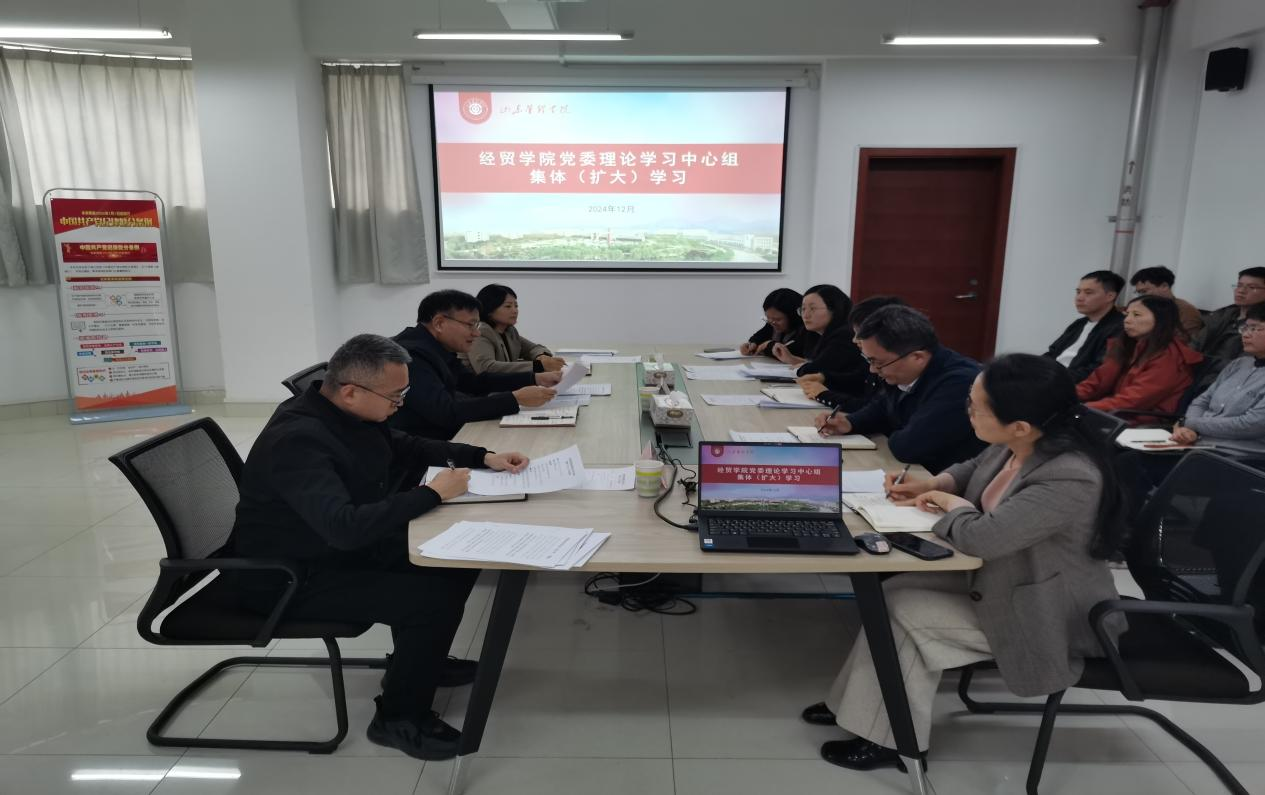 12月11日,经贸学院在明德楼203会议室召开党委理论学习中心组(扩大)学习会议,学校党委副书记孙琪列席旁听会议并点评,党组织理论学习列席旁听工作组成员,经贸学院领导班子、全体科级干部和系主任参加会议。
