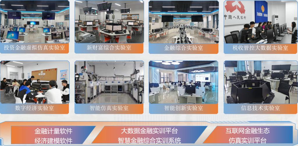 学校已建成投资金融虚拟仿真实验室、新财富综合实验室、金融综合实验室、数字经济实验室、税收管控大数据实验室、智能仿真实验室等10多间专业实验室,以及金融计量软件、经济建模软件、大数据金融实训平台、智慧金融综合实训系统、互联网金融生态仿真实训平台等多项软件设施。这些实验室和实训设施能够保障金融科技专业各项实践环节有序开展,让学生在实践中掌握从业技能、获得岗位能力。