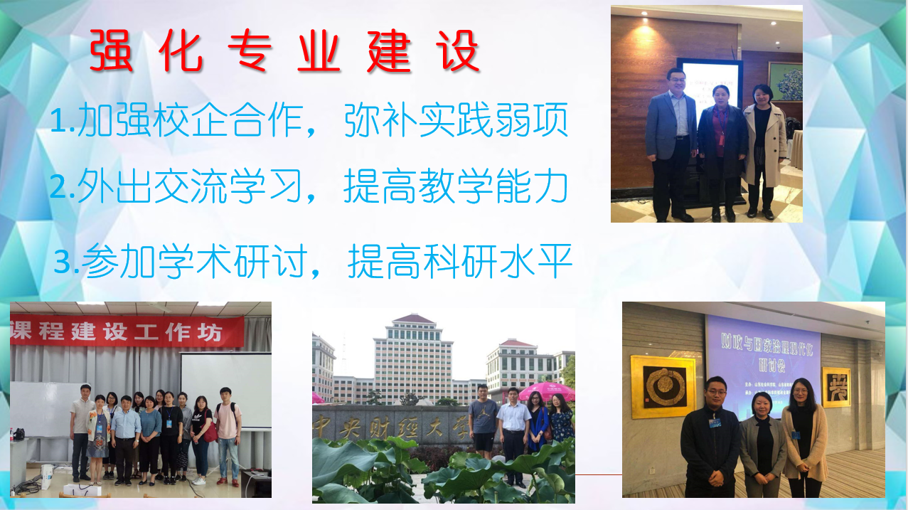 1.师资队伍建设:优化一支高水平的学科团队,在内培外引的政策下,大力引进人才同时,鼓励青年教师读博,外出企业锻炼,参加师资培训及学术会议等多管齐下,优化了职称结构、学历结构,提高了教师职业能力。